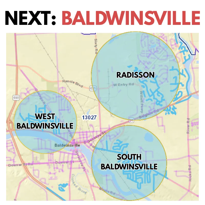 Each mailing is delivered to approximately 2,500 residential mailboxes within a defined Baldwinsville delivery zone. The same neighborhoods are targeted consistently.
